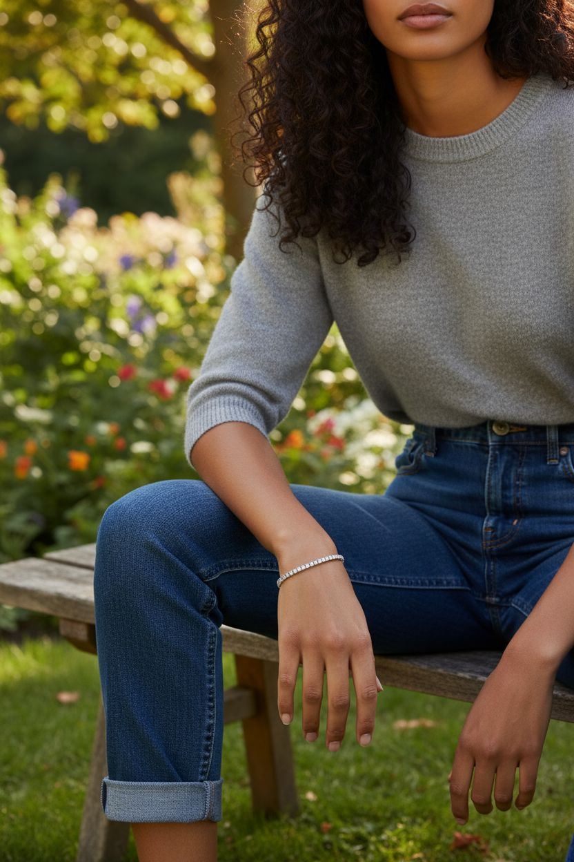 Pulsera de Tenis de Plata Pura 925 con 35 Piedras de Moissanita 0,1 CT, Longitud Ajustable.