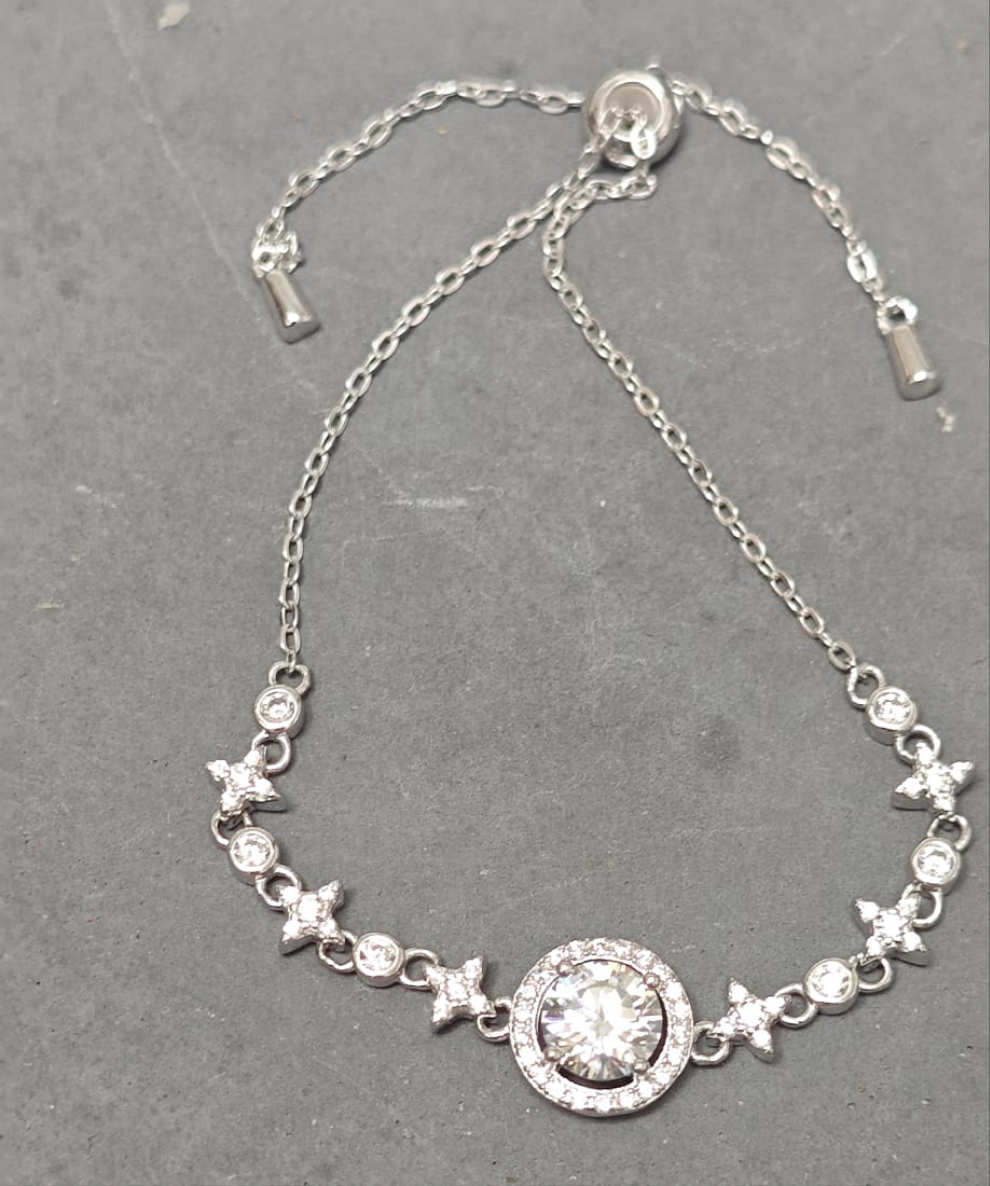 Pulsera Elegante Ajustable de Moissanita de 1Ct de Plata Esterlina con Cuentas de Estrella.