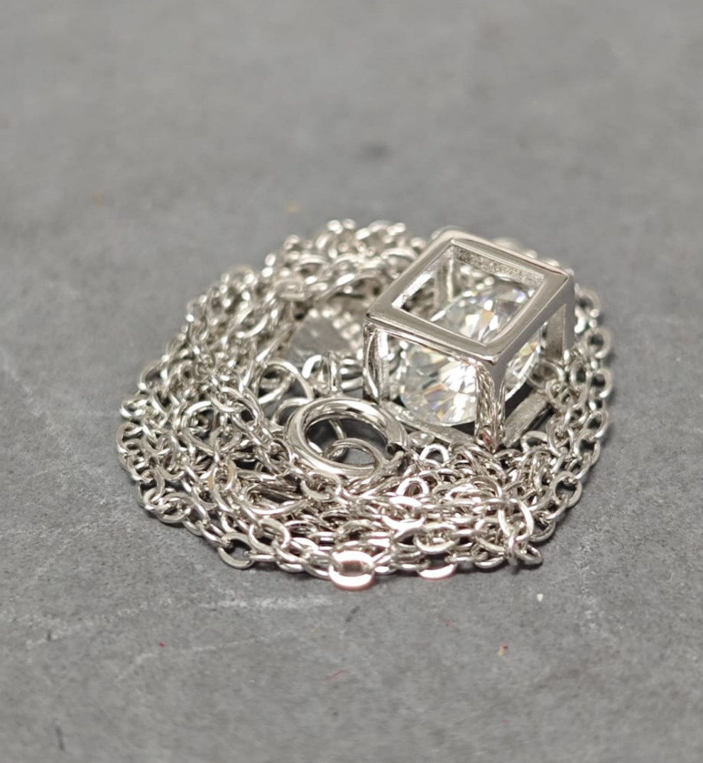 Collar con Colgante de Moissanita de 1 Quilate Elegante en Plata de Ley 925 - Diseño Geométrico Chic, Ideal para Uso Diario o para Ocasiones Especiales, Regalo Perfecto para Seres Queridos.