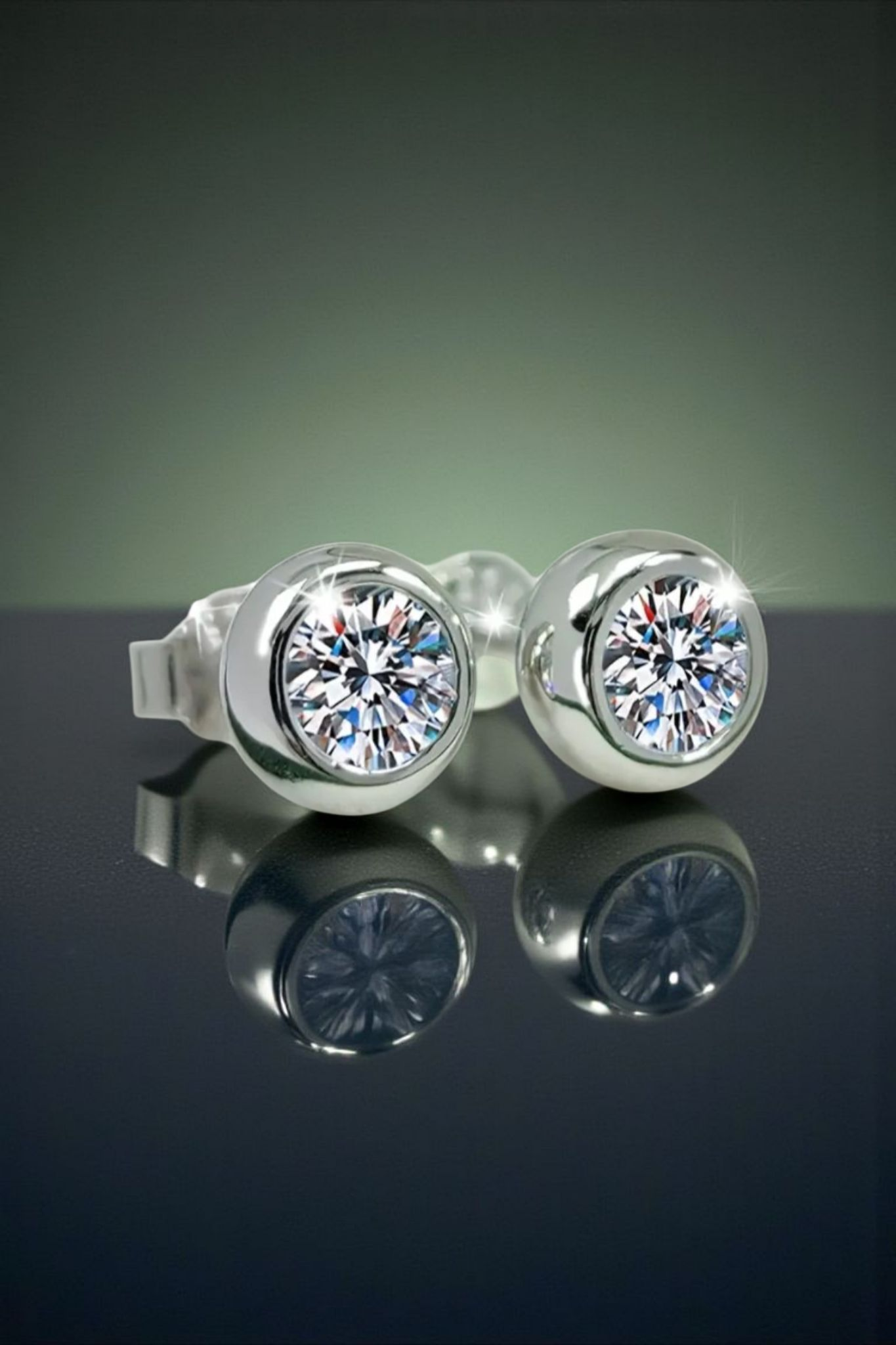 Pendientes Redondos de Plata 925 Minimalistas con 1 CT de Moissanita cada uno.
